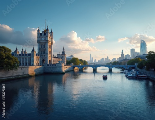 © NADA, Obraz premium Stunning Sunset View of London's Iconic Tower Bridge and City Skyline