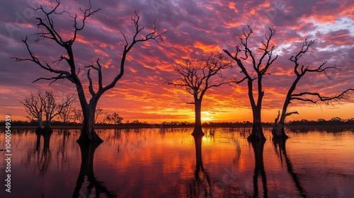Obraz premium Stunning Sunset with Clear Sky and Reflection in Water