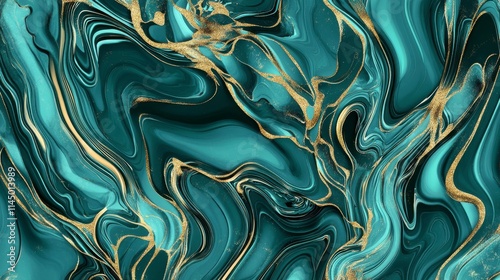 © Younes, Obraz premium Stunning Teal and Gold Marble Graphic Design