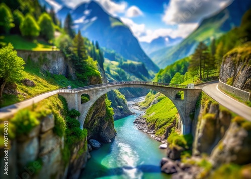 Fototapeta premium Stunning Tilt-Shift View of Devil's Bridge in Switzerland - Scenic Landscape...