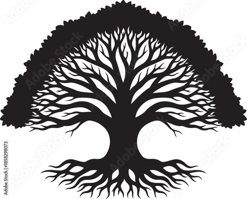 © Vectra, Obraz premium Stunning tree silhouette with intricate roots and branches