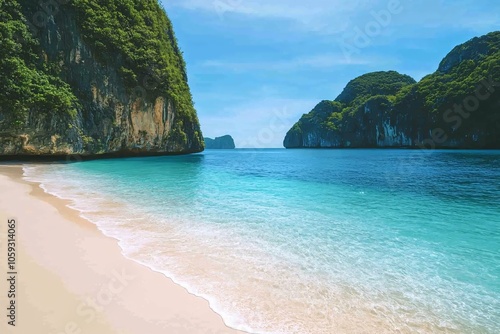 Fototapeta premium Stunning Tropical Beach with Crystal Clear Water and Lush Cliffs