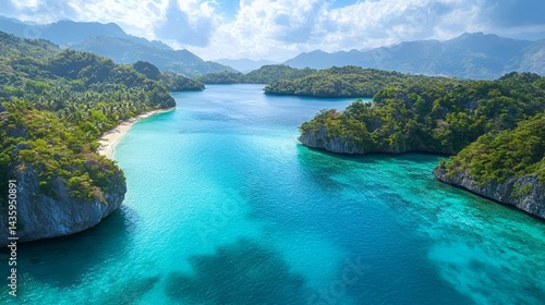 Fototapeta premium Stunning tropical landscape with turquoise waters and lush green mountains.