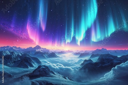 © Michael, Naklejka premium Stunning Turquoise Aurora in Vibrant Astral Background for Interstellar Travel