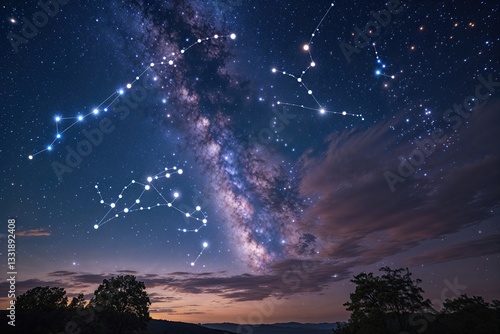 Fototapeta premium Stunning Twilight Sky with Shimmering Stars and a Cosmic Landscape