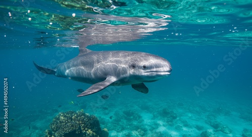 Fototapeta premium Stunning Underwater Shot of a Dolphin in its Oceanic Habitat