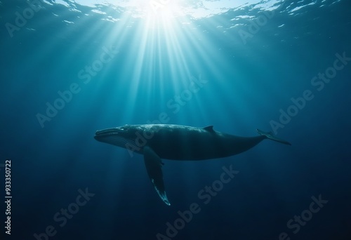 Fototapeta premium Stunning Underwater Whale Photography: Majestic Creature Gliding Through Sunlit Depths