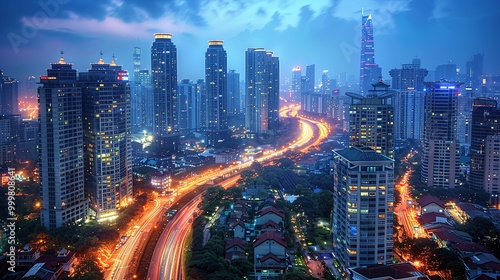 Obraz premium Stunning Urban Architecture Night View and Urban Landscape: A Visual Feast of...