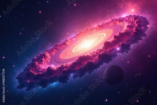Naklejka premium Stunning vibrant nebula in deep space, swirling cosmic dust and gas , space,...