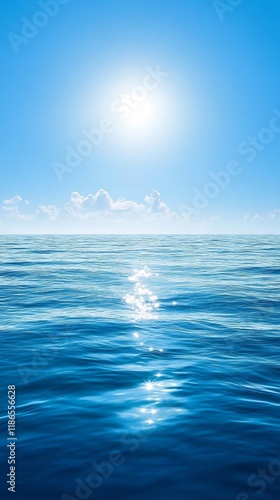 Obraz premium Stunning Vibrant Ocean Photo: Tranquil Summer Seascape Under Bright Sun. AI...