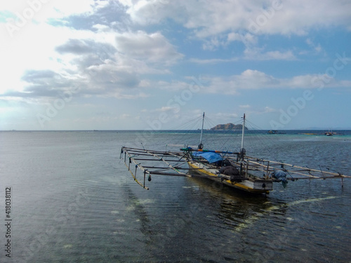 © Prosper Fawn, Fototapeta premium Stunning view, a boat wreck at Pulo Beach, Mesah Island Flores Indonesia
