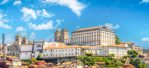 Fototapeta premium Stunning view hilltop area of the old city of Porto surrounding its medieval Cathedral. Porto (Oporto), Portugal
