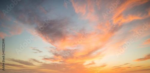 Fototapeta premium Stunning view of a dramatic sky with clouds at sunset. Natural background,...