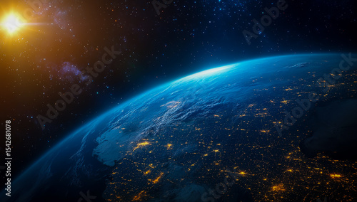 Obraz premium Stunning view of a planet from space, with a sprawling industrial city on one...
