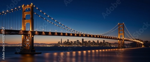 © Shadaw, Obraz premium stunning view of a suspension bridge at dusk