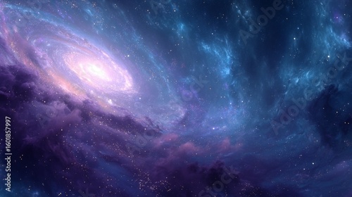 Fototapeta premium Stunning view of a vibrant galaxy with swirling clouds and bright stars in a...