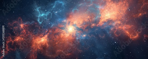 Fototapeta premium Stunning view of a vibrant nebula bursting with colors in deep space during...