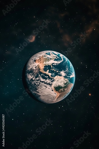 © Biggy, Obraz premium Stunning View of Earth Against a Starry Cosmos Background