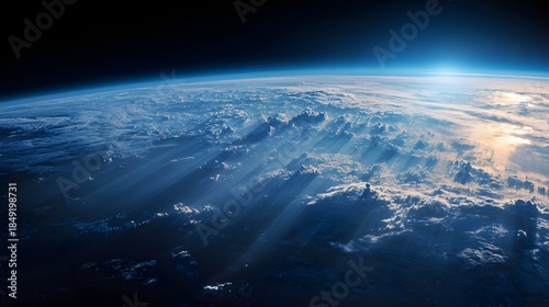 Fototapeta premium Stunning View of Earth from Space - A Breathtaking Perspective of Our Planets Atmosphere.