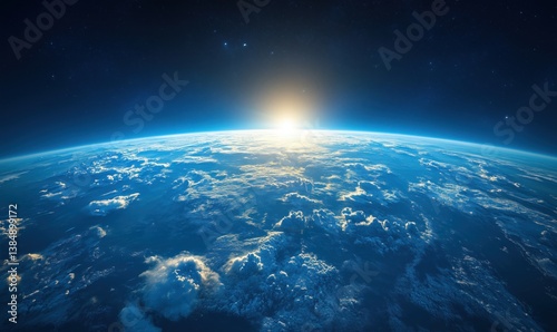 Fototapeta premium Stunning view of Earth from space at sunrise with clouds and atmosphere