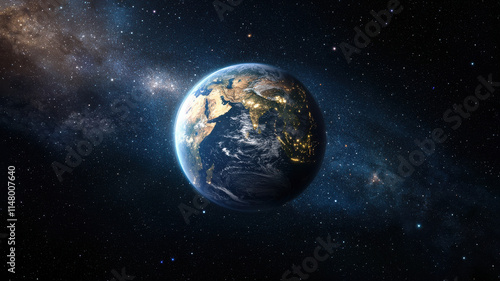 Fototapeta premium stunning view of Earth from space, showcasing continents and city lights