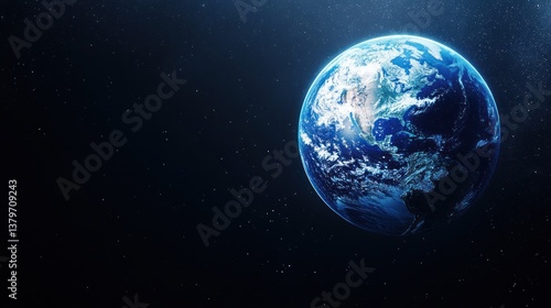 Obraz premium Stunning view of Earth from space, showcasing continents, oceans, and atmosphere against a backdrop of stars.