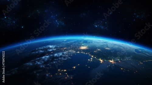Obraz premium Stunning view of Earth from space with city lights illuminating the darkness.