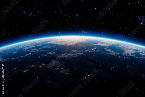 © STOCK AI, Obraz premium Stunning View of Earth from Space with Glowing Atmosphere