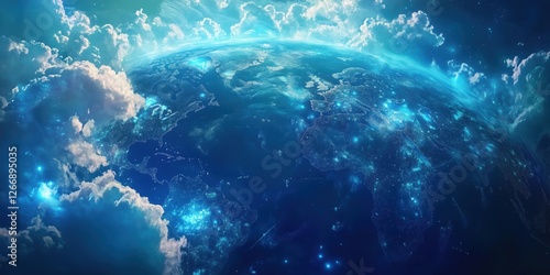 Fototapeta premium Stunning view of Earth from space with glowing cities and vibrant clouds