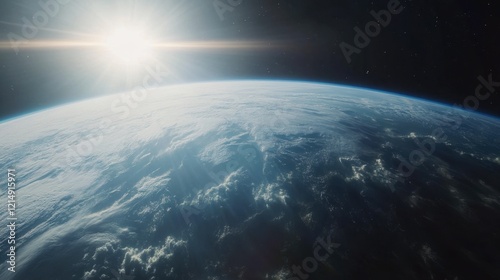 © PENJAN PANTANA, Obraz premium Stunning View of Earth from Space with Sunrise in Background