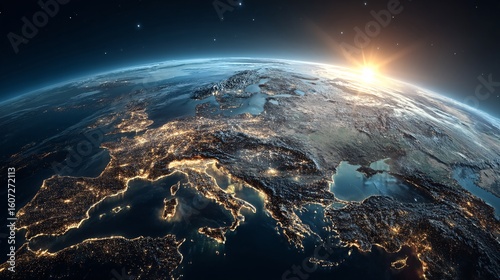 Fototapeta premium Stunning View of Earth from Space with Sunrise Over Europe