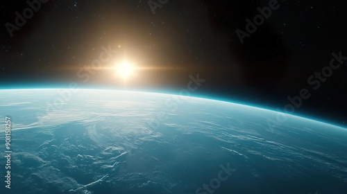 © K-MookPan, Fototapeta premium Stunning view of Earth from space with the sun rising over the horizon.