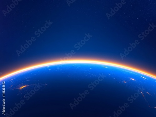 © Atmospheric stock, Obraz premium Stunning view of earth horizon at sunrise from space