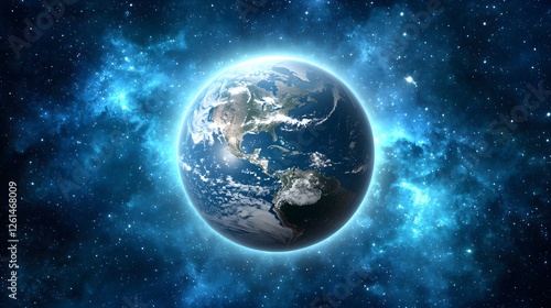 Obraz premium Stunning View of Earth Surrounded by Stellar Space and Nebulae