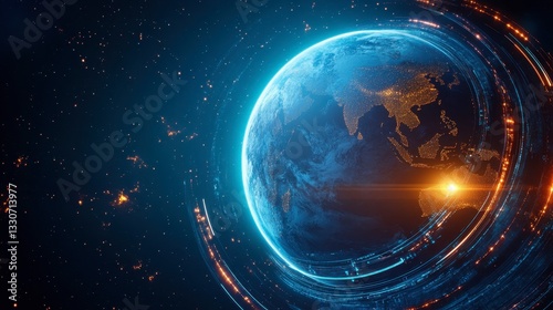 © PENJAN PANTANA, Obraz premium Stunning View of Earth with Glowing Atmosphere and Galaxy Background