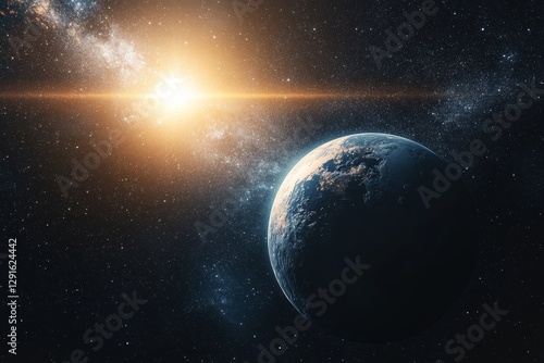 Fototapeta premium Stunning View of Earth with Sun and Galaxy in Background