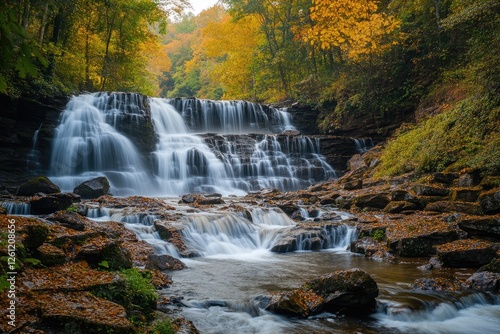 © Serhii, Fototapeta premium Stunning View of Ekom Waterfall Cascade in Cameroon’s Lush Jungle Landscape