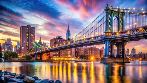 © Arnada, Fototapeta premium Stunning View of Manhattan Bridge from DUMBO with Iconic City Skyline and Vibrant Urban Atmosphere
