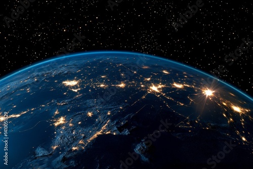 Fototapeta premium Stunning view of planet earth from space with city lights at night
