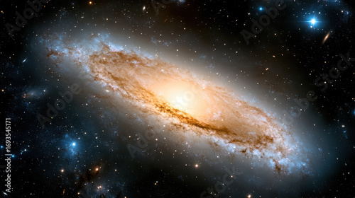 © siraphol, Fototapeta premium Stunning view of spiral galaxy with bright core and swirling arms, showcasing cosmic beauty