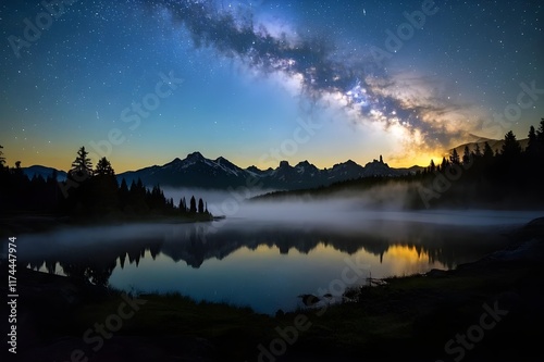 © Nana, Fototapeta premium Stunning View of the Milky Way Galaxy at Night
