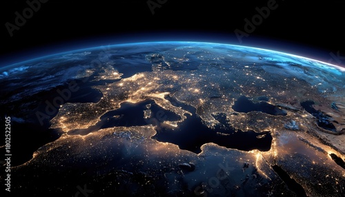 Obraz premium Stunning Views Of Africa, Europe, And Asia At Night From Space With City Lights: Italy, Germany, France, Spain, And More!