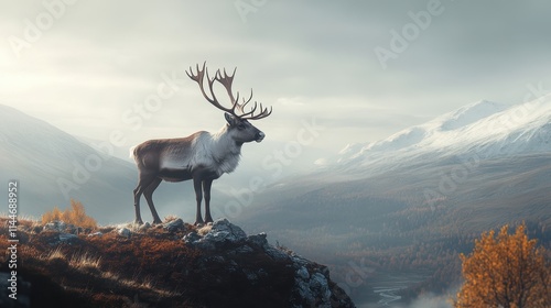 © Maetinee, Naklejka premium Stunning visuals majestic reindeer in serene mountain high-fidelity environment