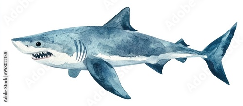 Naklejka premium Stunning Watercolor Illustration of a Shark in its Natural Habitat