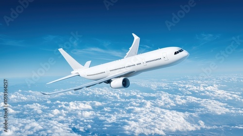 Obraz premium Stunning White Airplane Flying Above the Clouds
