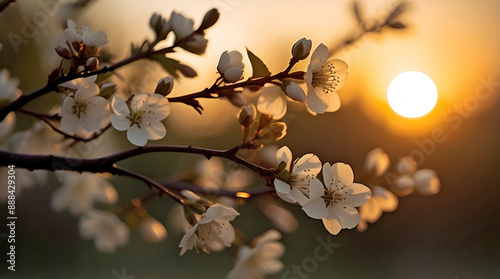 © Mordikai Art, Fototapeta premium Stunning White Blooms Golden Hour Backlight Background