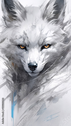 Obraz premium Stunning White Fox Wolf Painting in Abstract Style with Dramatic Splash of...