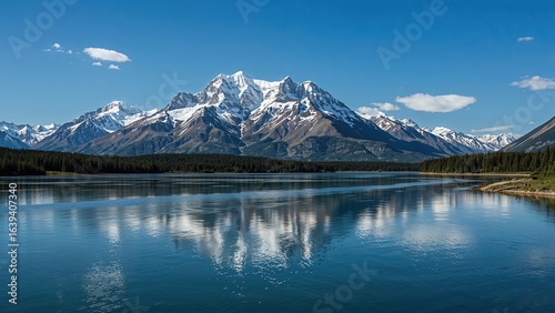 Naklejka premium Stunning wilderness scene with snow-covered hills and flowing water