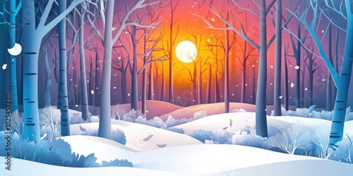 Obraz premium Stunning winter scenery showcasing a forest illuminated by sunlight,...