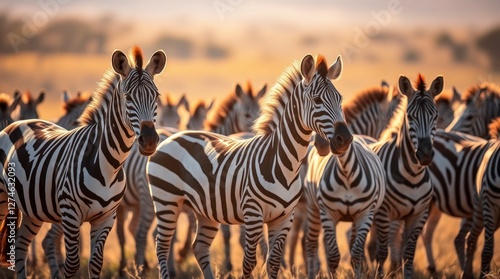 © BONDET LUCKY, Fototapeta premium Stunning Zebras in Golden African Sunset Wildlife Photography